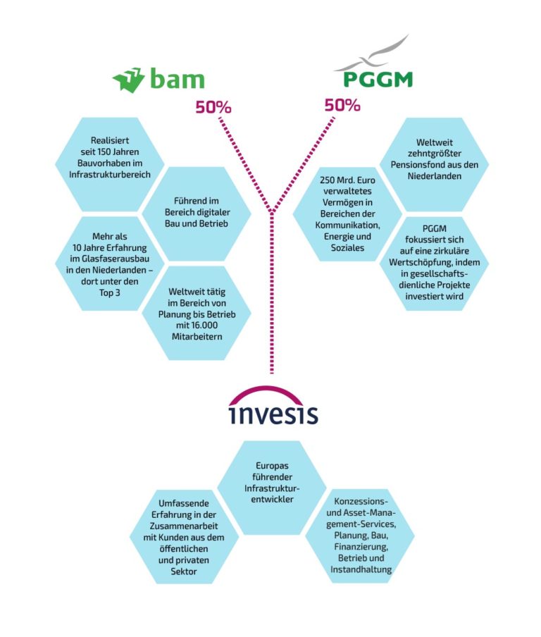 VitrumFiber ist eine 100%-ige Tochtergesellschaft der Invesis, welche zu gleichen Anteilen vom niederländischen Baukonzern Royal Bam und vom niederländischen Pensionsfont PGGM gehalten wird.